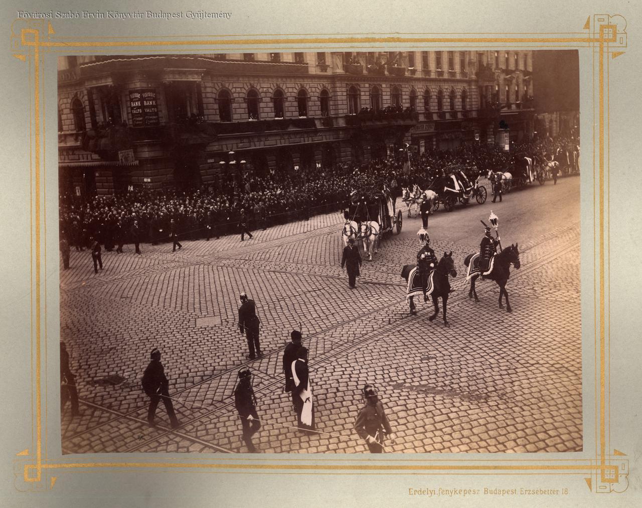 [Kossuth Lajos temetése, a gyászmenet az Erzsébet körúton, előtérben a koszorúkat szállító kocsikkal, 1894. április 1.]