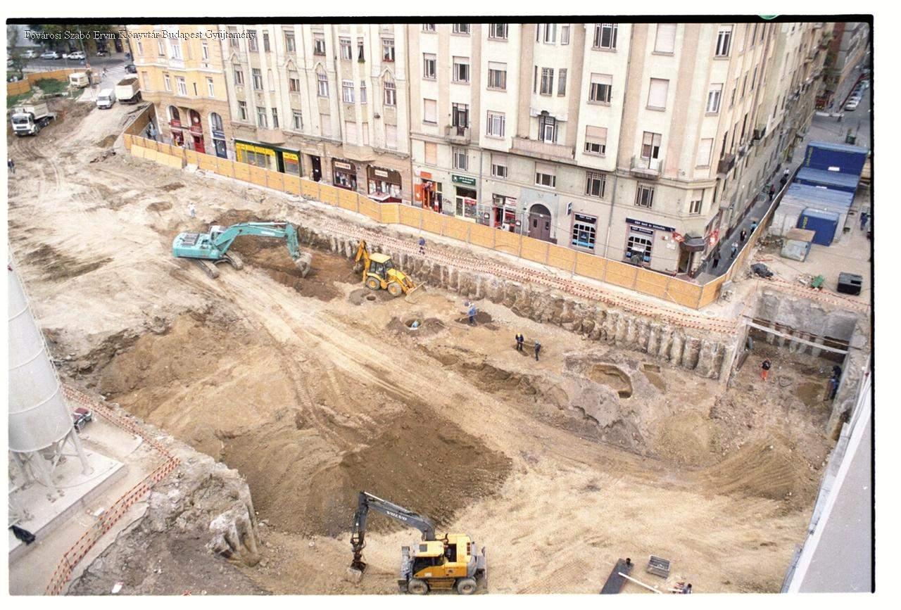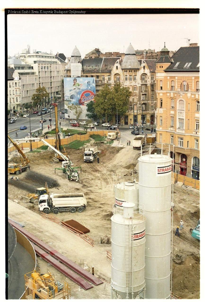 külső felvétel, épületkép, utcakép, metróállomás, munkagép, daru, ember, tehergépkocsi, 2000-es évek