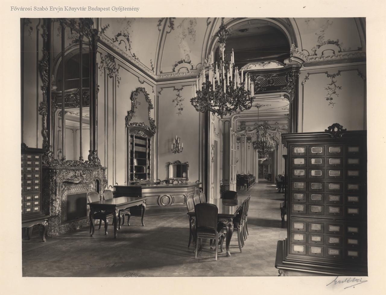 könyvtár, neobarokk, lámpa, könyvtári katalógus, belső felvétel, bútor, tükör, könyvtári kölcsönzés