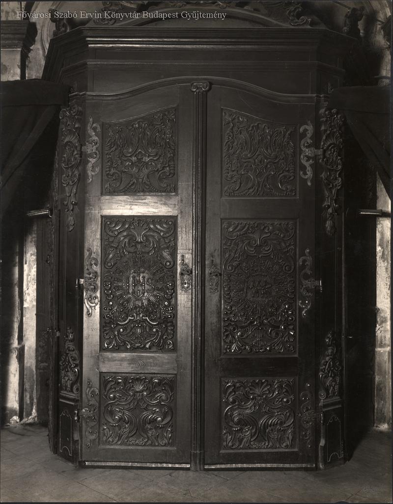 templom, katolikus egyház, barokk, kapu, fafaragás, épületkép, belső felvétel, 1900-as évek