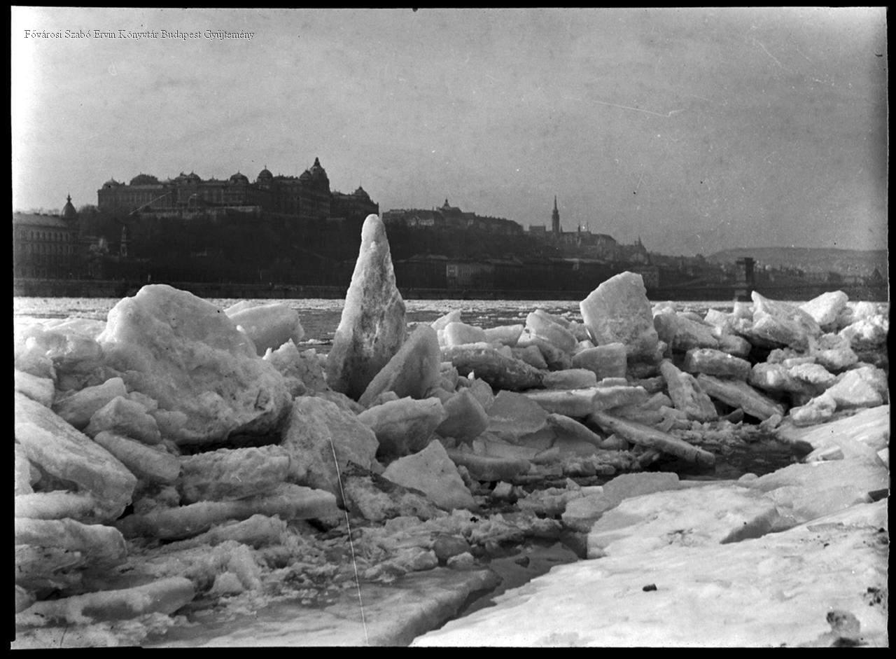 part, folyóvíz, folyami jég, tél, látkép, két világháború közötti időszak, 1928