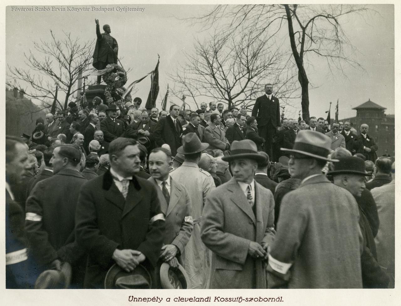 [A new york-i Kossuth-szobor avatására utazó budapesti küldöttség útja] ünnepély a clevelandi Kossuth-szobornál