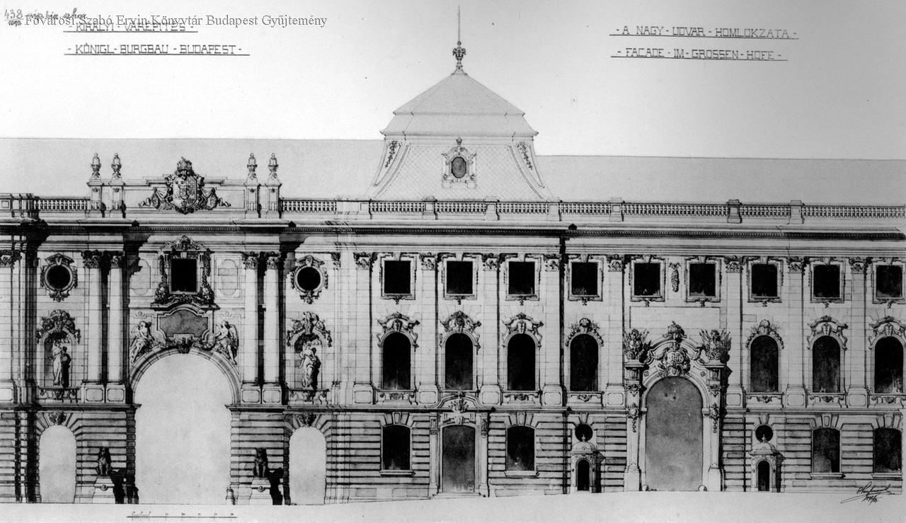 A királyi vár főkapuja és az udvari homlokzat rajza