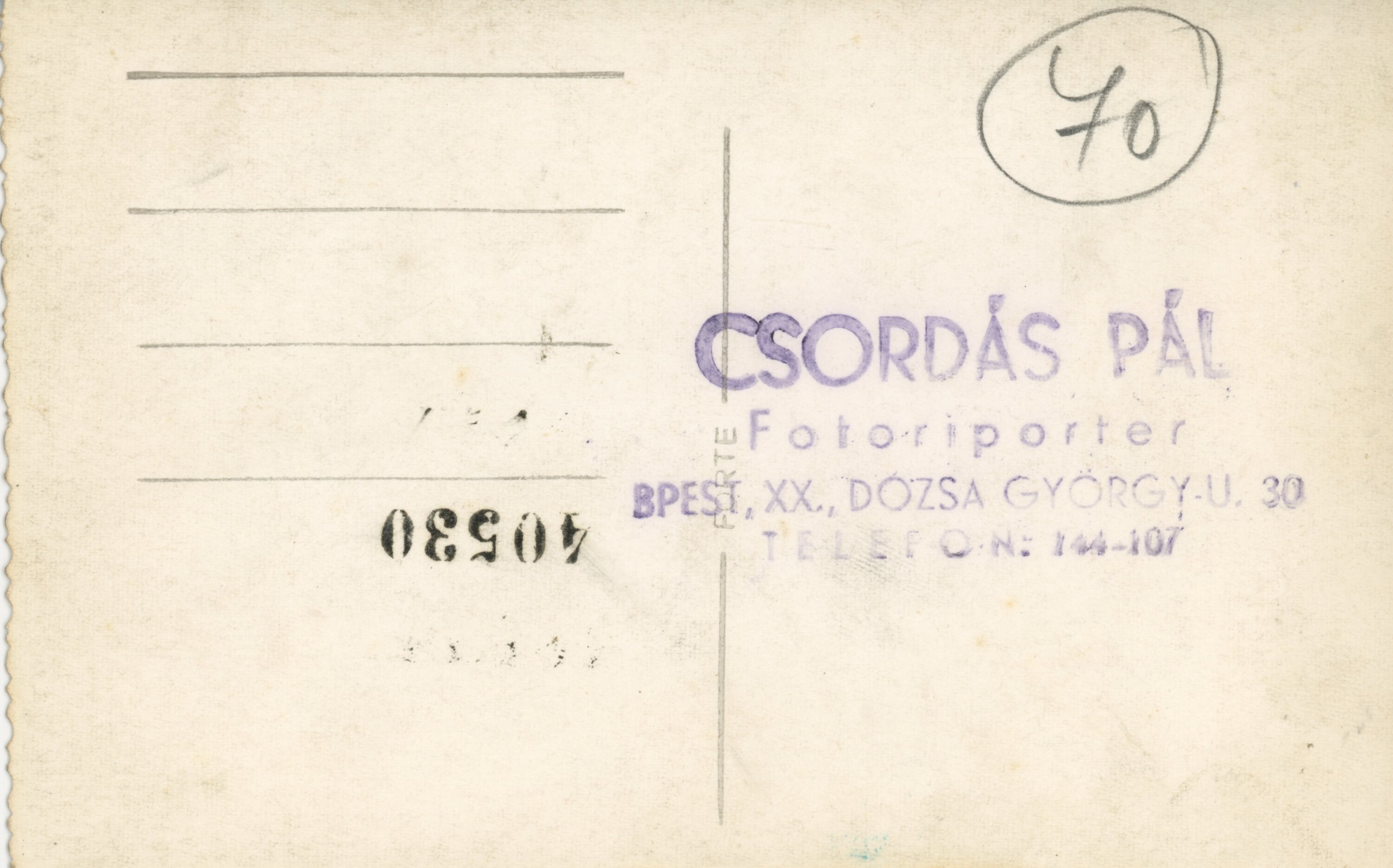 Technikai adatok: fotó : poz., monokróm ; méret: 9x14 cm