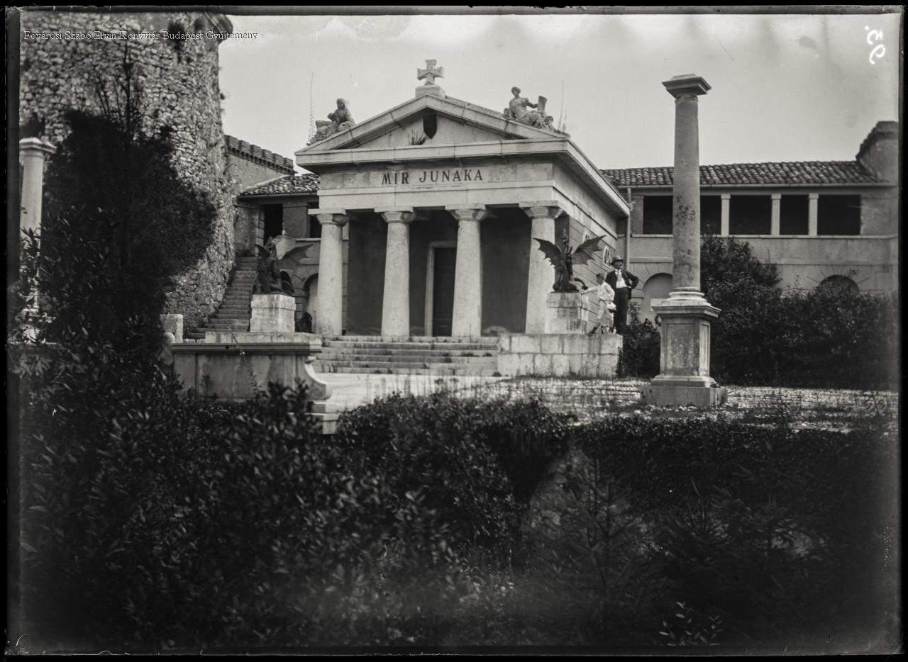 épület, mauzóleum, síremlék, temetkezés, vár, szobor, sárkány, külső felvétel, növényzet, oszlop, ember