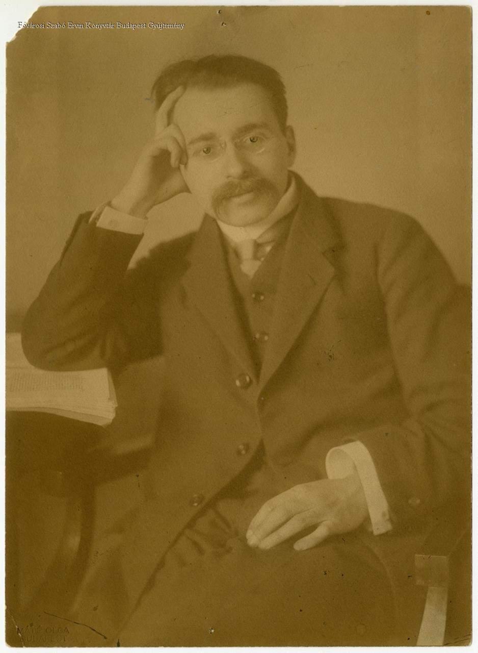 [Szabó Ervin ülő, könyvre támaszkodó portréja]