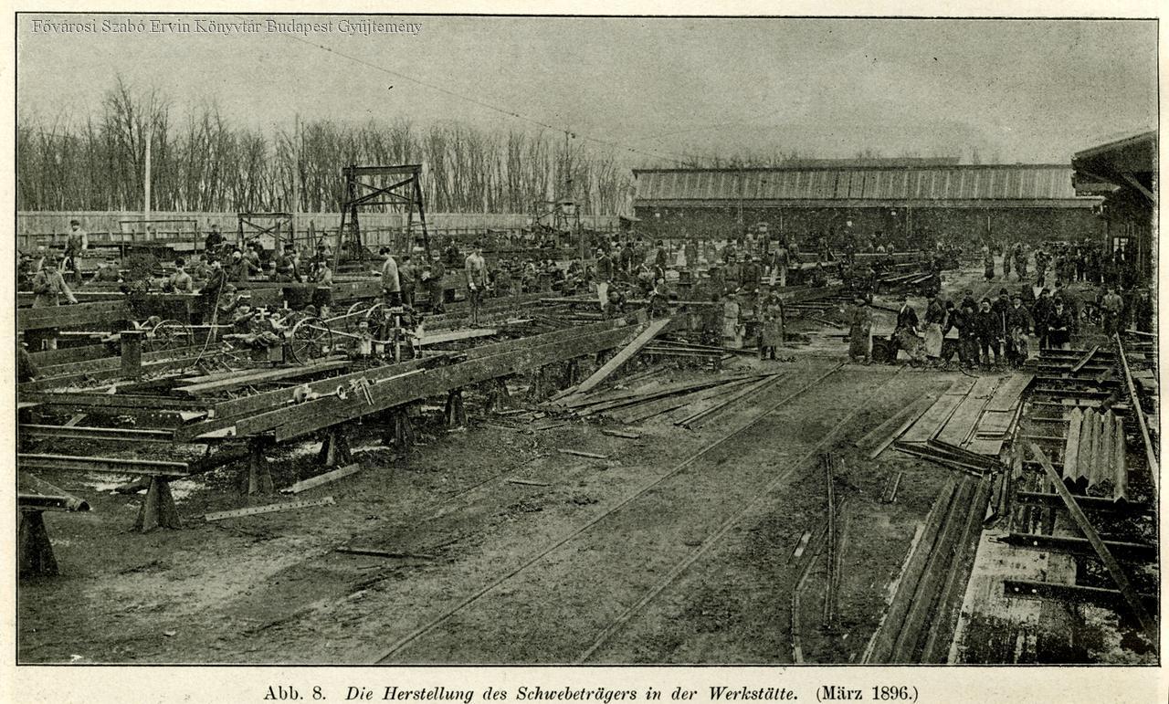Die Herstellung des Schwebeträgers in der Werkstätte, März 1896