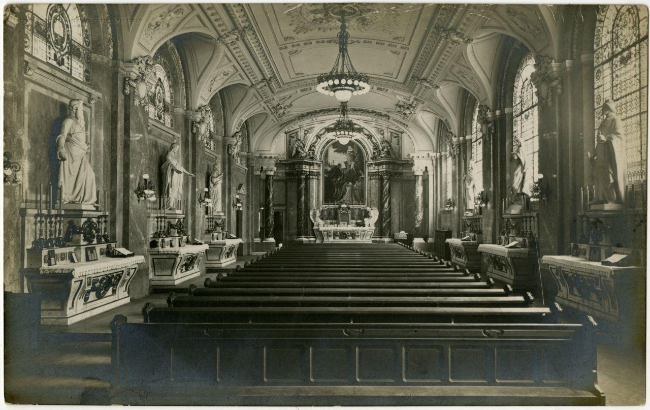 piaristák, kápolna, oltár, templomi berendezés, képes levelezőlap, belső felvétel, 1910-es évek