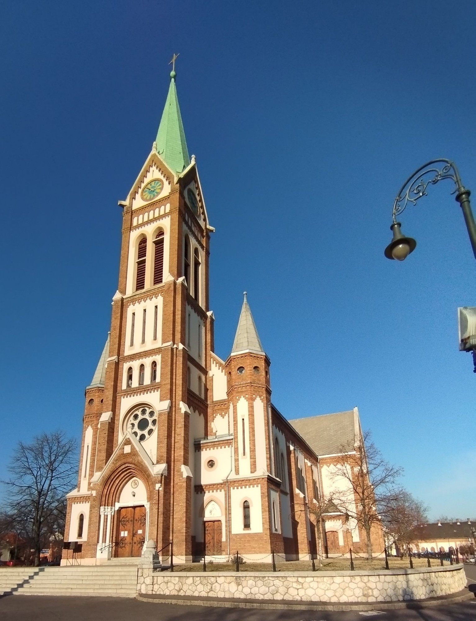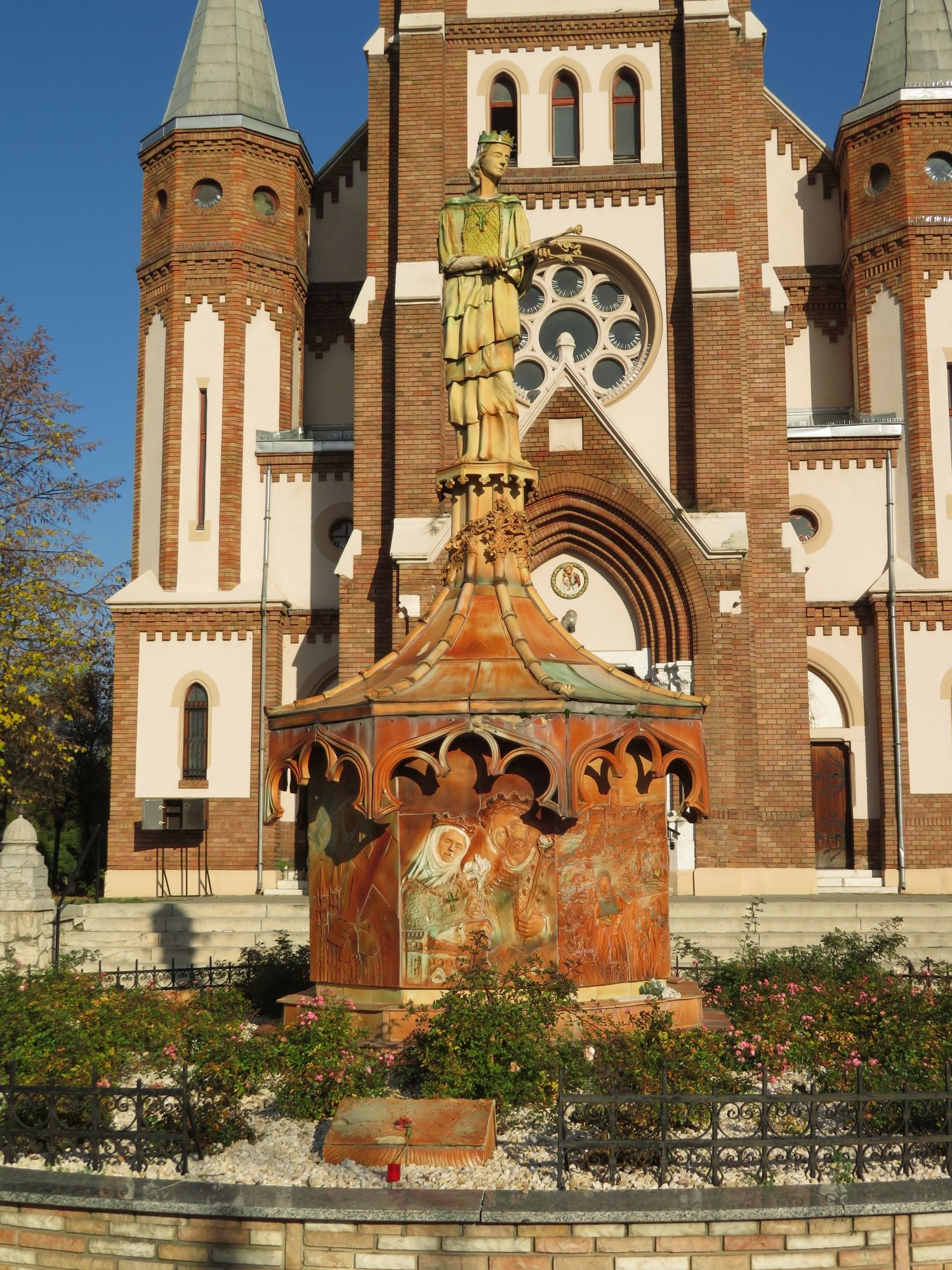 1908-ban Bánszky Mihály tervei alapján kezdték építeni a Szent Erzsébet téren található templomot, melyet1910. július 11-én szenteltek fel. Felajánlásokból épült, az adakozók neve a bejáratnál levő márványtáblán olvasható. Előtte Szent Erzsébet szobra, balra pedig az Anyák szobra látható.