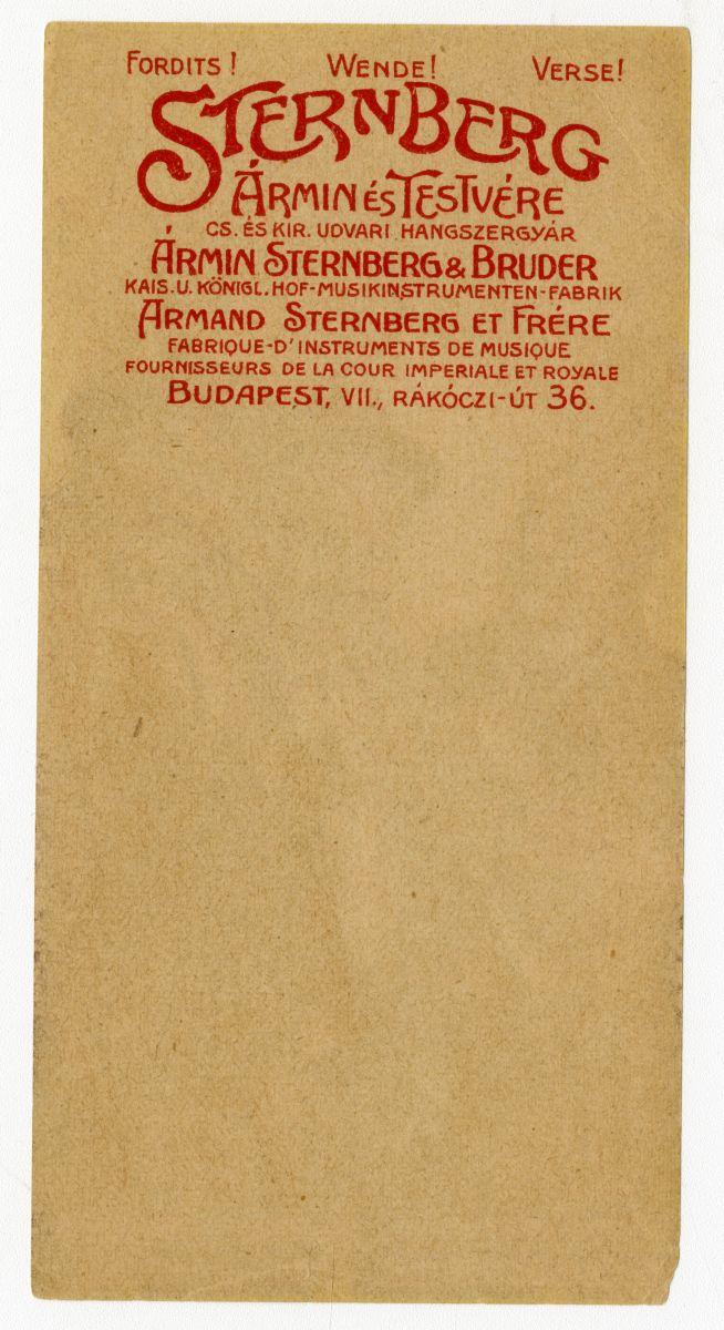 Cégnév:Sternberg Ármin és Testvére Hangszergyár