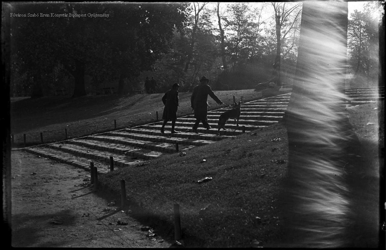 kutya, kutyatartás, séta, park, jelenetkép, két világháború közötti időszak, 1932