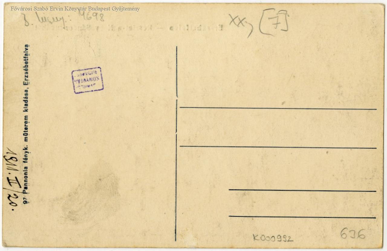 képes levelezőlap, utcakép, gyógyszertár, ember, lakóépület, villamos közlekedés, vasúti sín, 1911