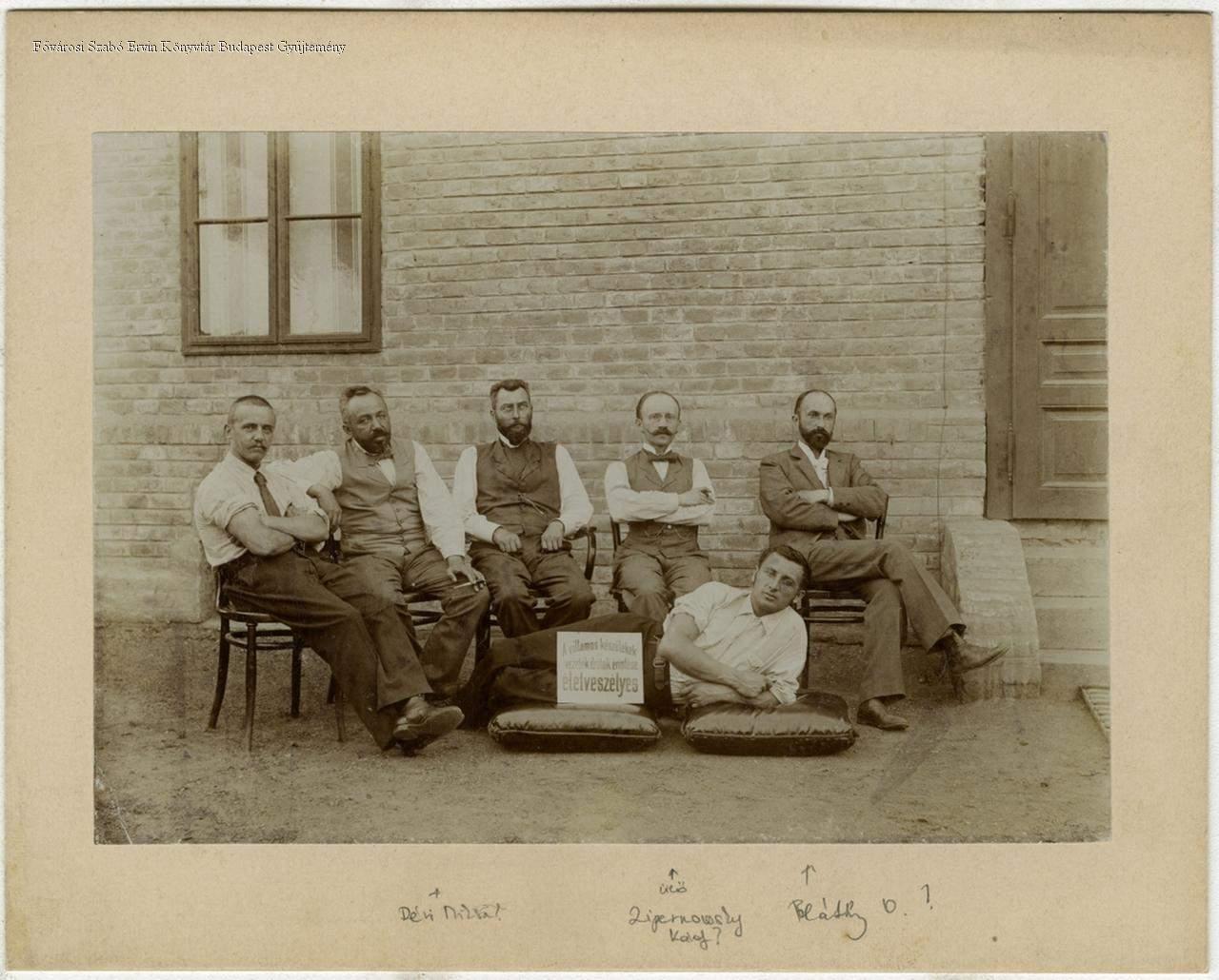[Feltehetőleg elektrotechnikai mérnökök, szakemberek csoportképe, az ülők közül balról a második Stark Lipót gépészmérnök, erőműtervező a Ganz Villamossági Rt., a Magyar Villamossági Rt. vezető munkatársa, később Budapest Székesfőváros Elektromos Művei első igazgatója]