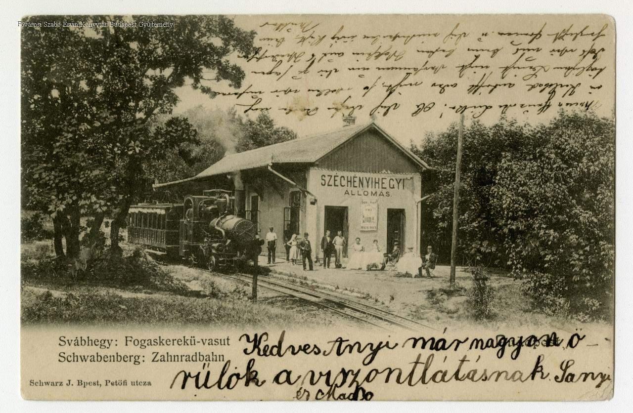 Fogaskerekű vasút a Széchenyi-hegyi állomásnál a Svábhegyen