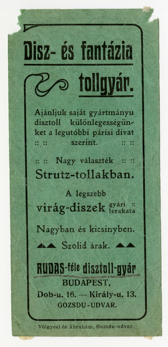 divat, öltözetkiegészítő, virágdísz, díszműáru, kalapdísz, üzlet, reklámnyomtatvány, kisnyomtatvány, aprónyomtatvány, számolócédula