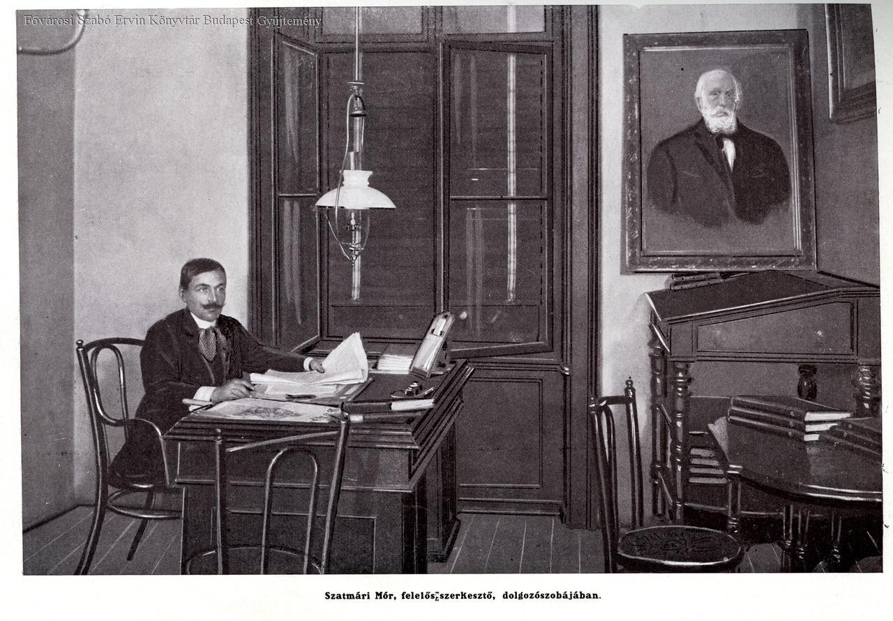 Szatmári Mór felelős-szerkesztő dolgozószobájában :[Budapest c. lap szerkesztősége]