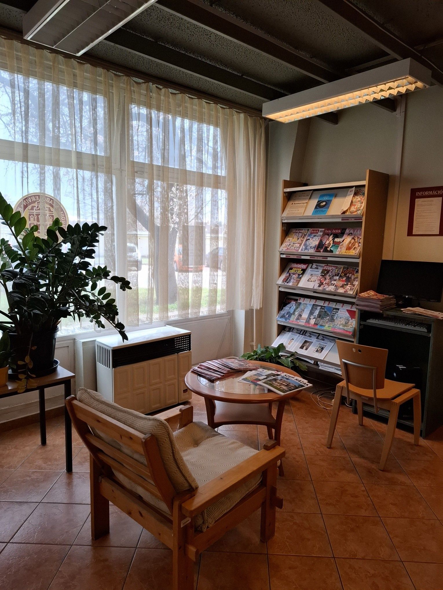 A könyvtár előterében helytörténeti vagy aktuális témájú kiállítás fogadja az ide betérőt.