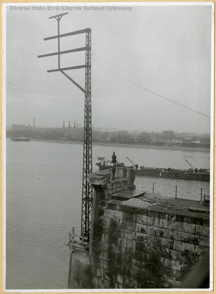 közúti híd, vezetéktartó oszlop, villamos szerelés, hídépítés, uszály, 1920-as évek