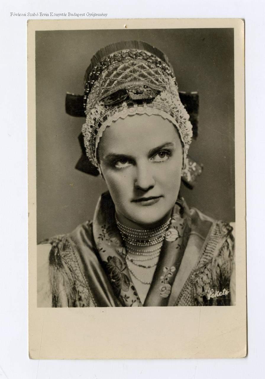 képes levelezőlap, műtermi portré, színész, nő, film, jelmez, népviselet, palócok, mellkép, 1940-es évek