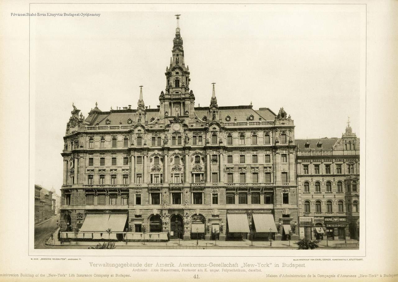 Verwaltungsgebäude der Amerik. Assekuranz-Gesellschaft "New-York" in Budapest Administration Building of the "New-York" Life Insurance Company at Budapest = Maison d'Administration de la Compagnie d'Assurance "New-York" à Budapest : Architekt: Alois Hausmann, Professor am K. ungar. Polytechnikum, daselbst