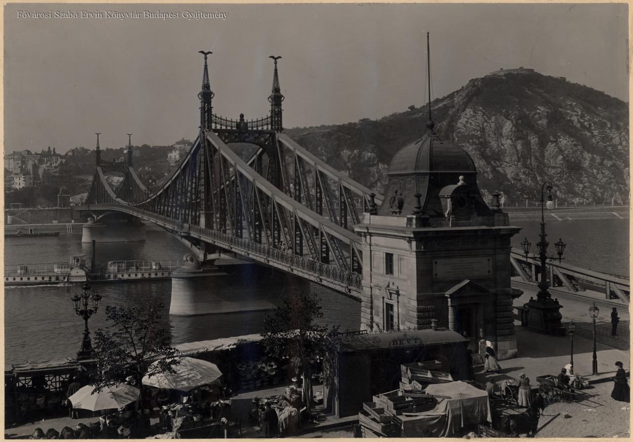 híd, hídfő, piac, hídvámkezelő épület, villamos megállóhely, ember, gőzhajó, látkép, 1900-as évek