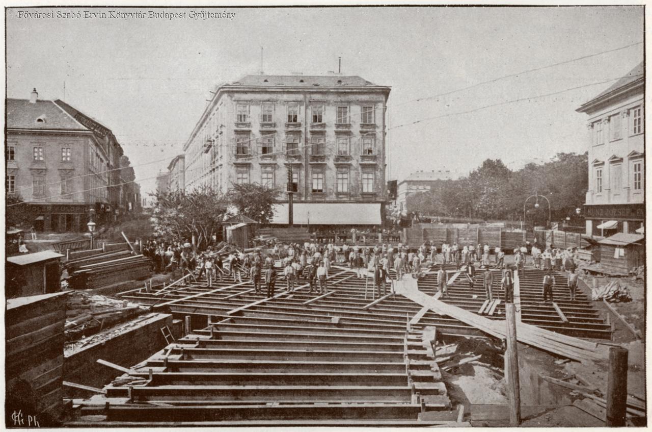 földalatti vasút, közlekedésépítés, födém, acélszerkezet, munkás, munkavégzés, külső felvétel, építés, 1895