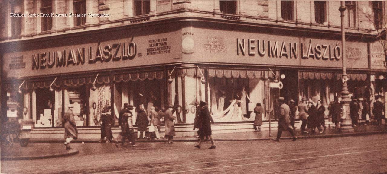 [Neuman László vászon-, divatáruboltjának portálja a VII. Rákóczi út 64. alatt]