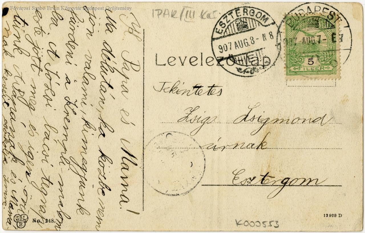 képes levelezőlap, folyó, hajó, hajógyár, hajógyártás, gyárkémény, kikötő, ipari épület, 1905-1907