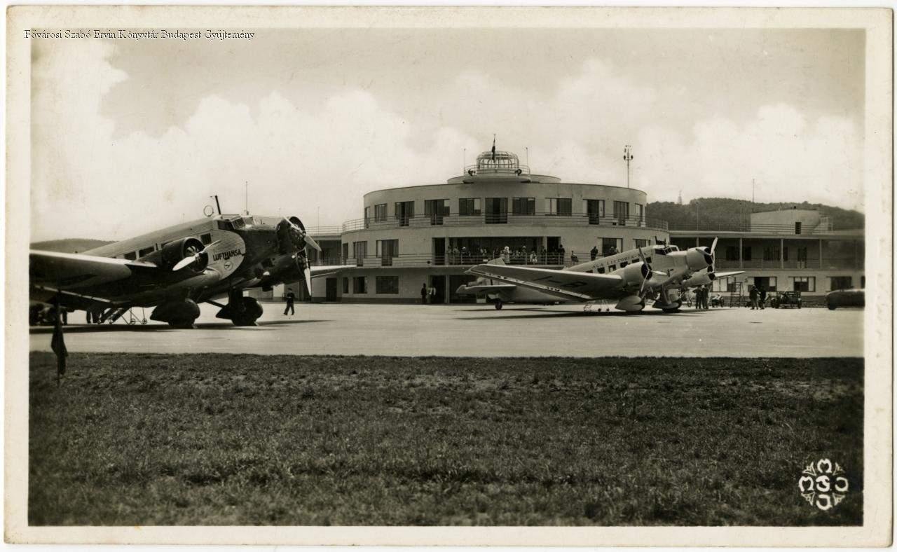 repülőtér, repülőgép, képes levelezőlap, 1930-as évek, 1940-es évek
