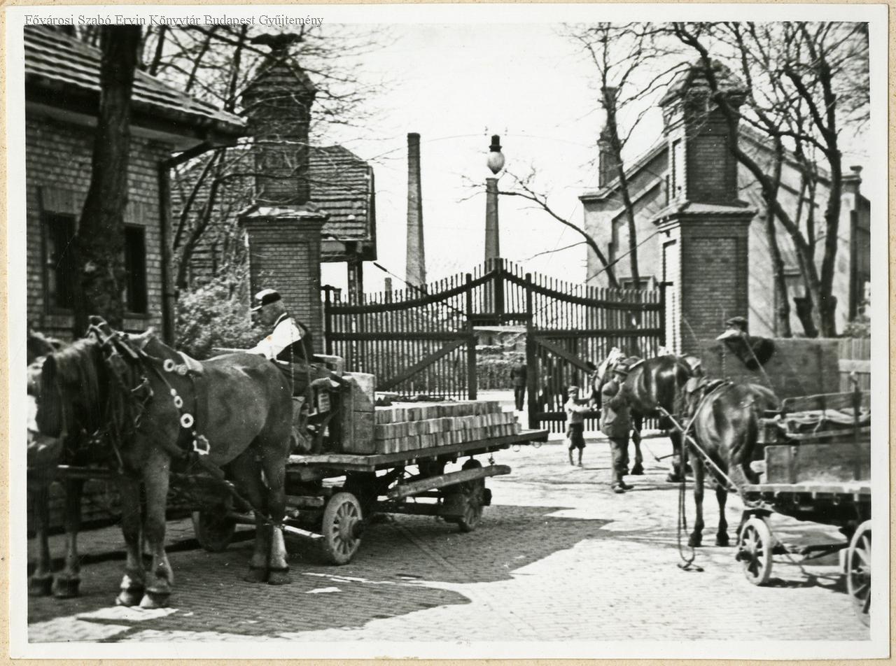 építőanyag-ipar, tégla- és cserépipar, ipari épület, kapu, lovas kocsi, szállítás, teherszállítás, 1933