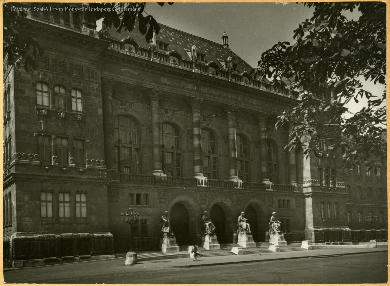 egyetem, szobor, homlokzat, épületkép, külső felvétel, 1930-as évek