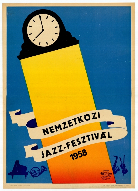 Az 1958 júliusában a Margitszigeten megrendezett nemzetközi jazzfesztivál plakátja, amelyen fellépett Elizabeth Charles, René Glaneau, jan Walasek énekesek, a Hot, a Bartek, a Kucsera együttesekm valamint magyar fellépők, mint a Chappy és a Holéczy együttesek. A plakáton hangszerek (zongora, kürt, szaxofon, hegedű) láthatók és egy óra, amely 20:00 órát mutat, felhívva a figyelmet a margitszigeti koncert kezdési időpontjára.