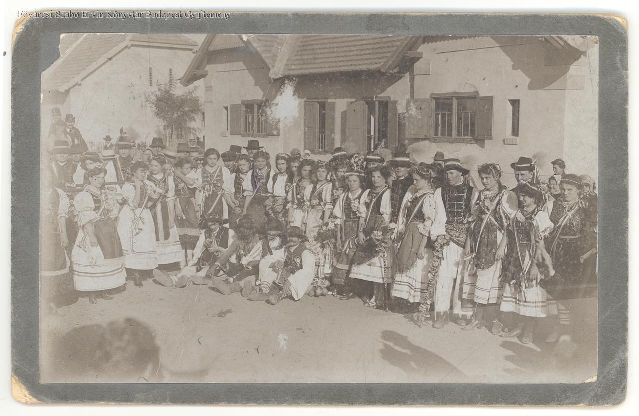 ünnepség, csoportkép, gyermek, férfi, nő, ruházat, népviselet, 1910 körül