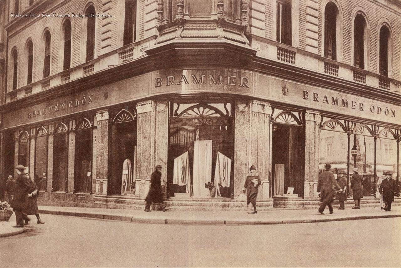Budapest új látványossága a ragyogó köntösbe öltözött Brammer-áruház berendezését [...] Fischer Bernát és Fiai Asztalosárugyár (VIII. Práter u. 74.) készítette