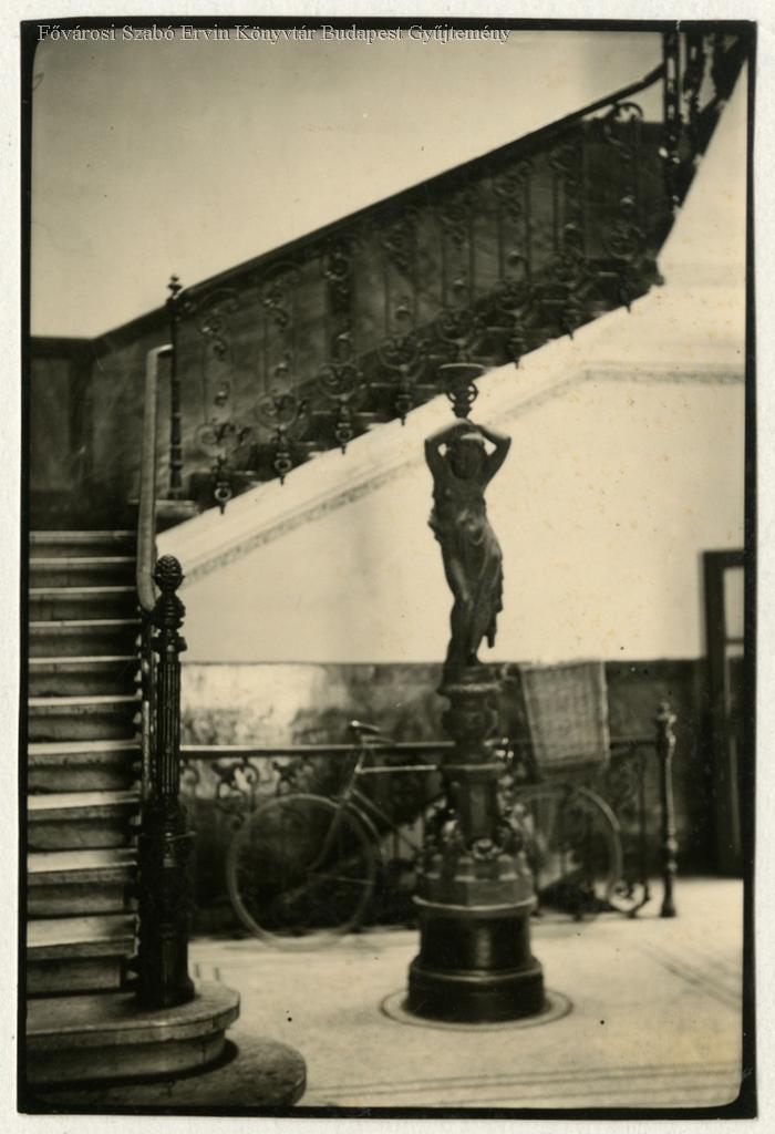 lakóépület, szobor, nő, lépcsőház, kerékpár, 1930-as évek