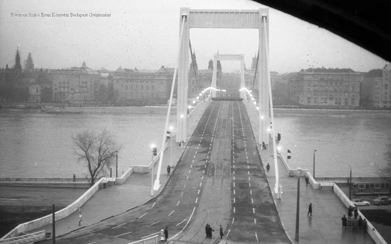 A jelenlegi Erzsébet híd 1961-1964 között épült a második világháborúban elpusztított első Erzsébet híd helyére, az új hidat 1964. november 21-én avatták fel