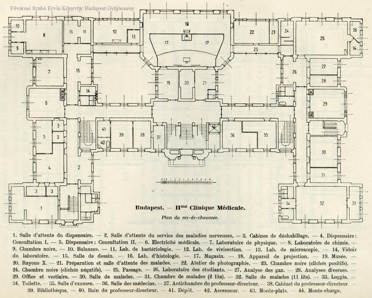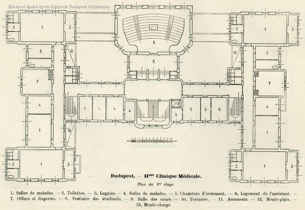 kórház, építészeti tervrajz, 1909
