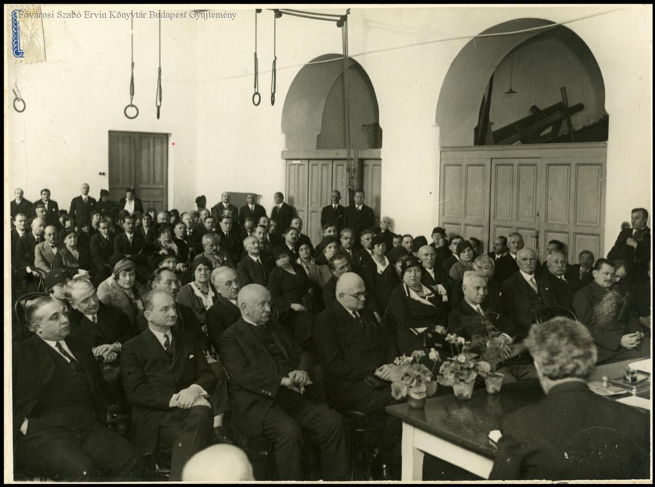 [Az Országos Polgári Iskolai Tanáregyesület közgyűlésének hallgatósága a VII. kerület Kertész utcai fiúiskola tornatermében, 1933. november 5.]