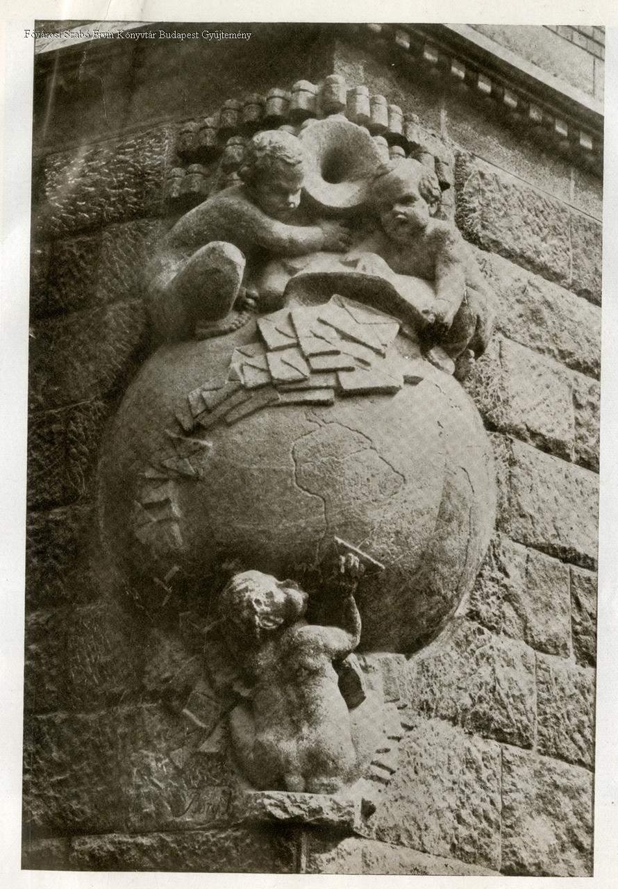 posta, épületdíszítés, szobor, dombormű, levélkézbesítés, földgömb, putto, külső felvétel, 1926