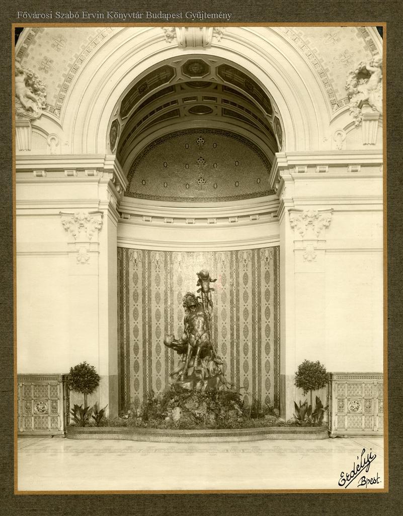 gyógyfürdő, belső felvétel, szobor, épületdísz, díszkút