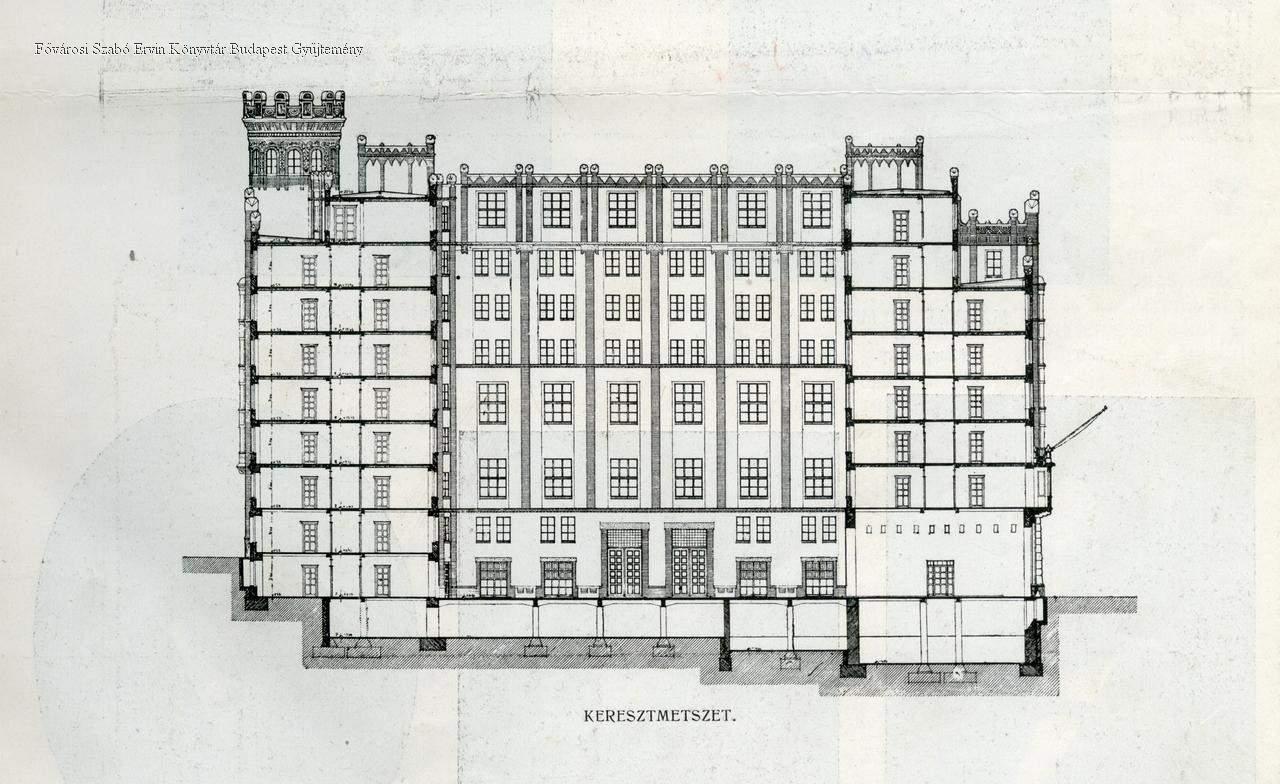 A budai új postapalota : keresztmetszet