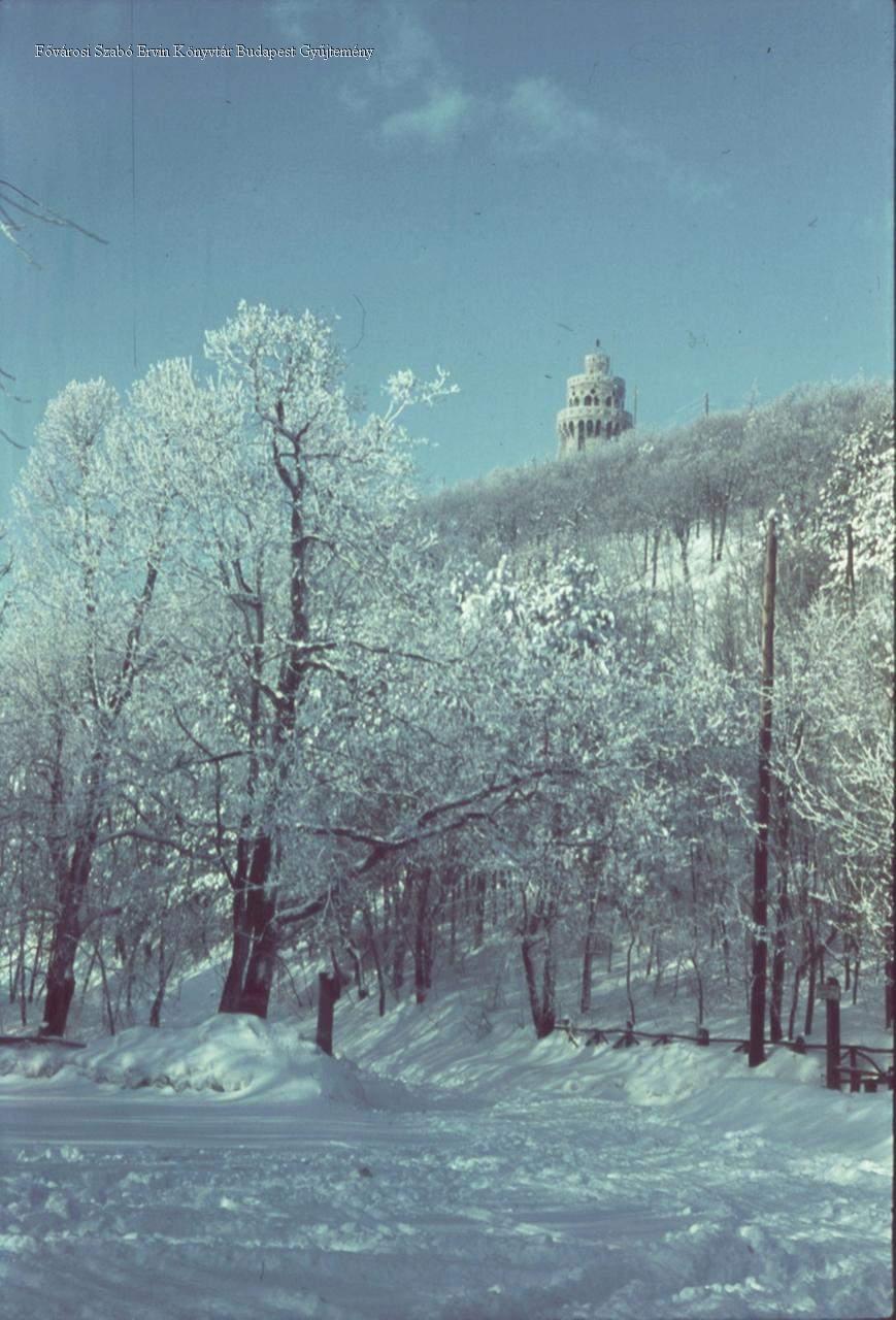 látkép, hegyvidék, hegy, növényzet, fa, kilátó, tél, hó, fagy, kirándulóhely, 1937-1944