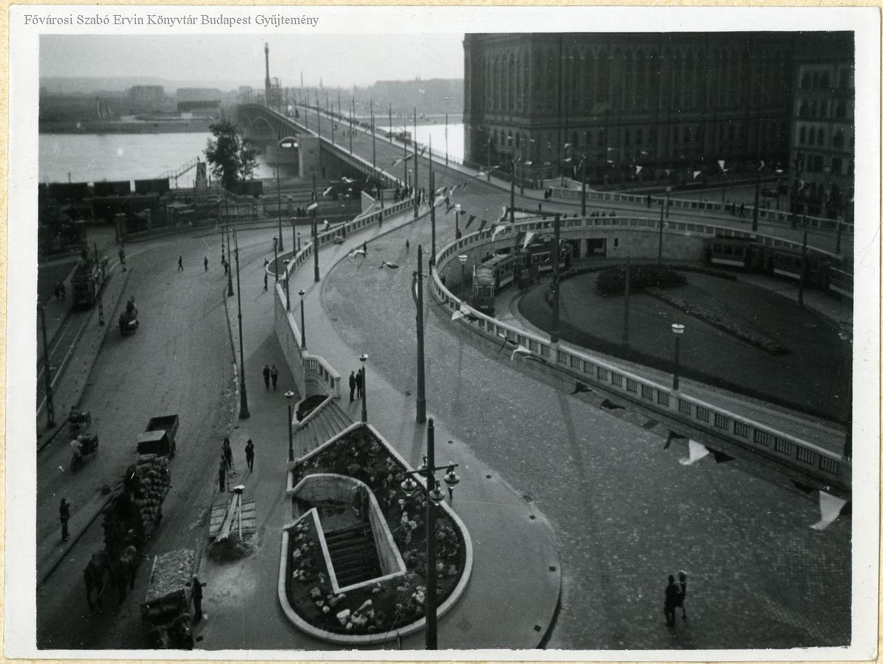 közúti híd, hídfő, villamosmegálló, villamos kocsi, 1937