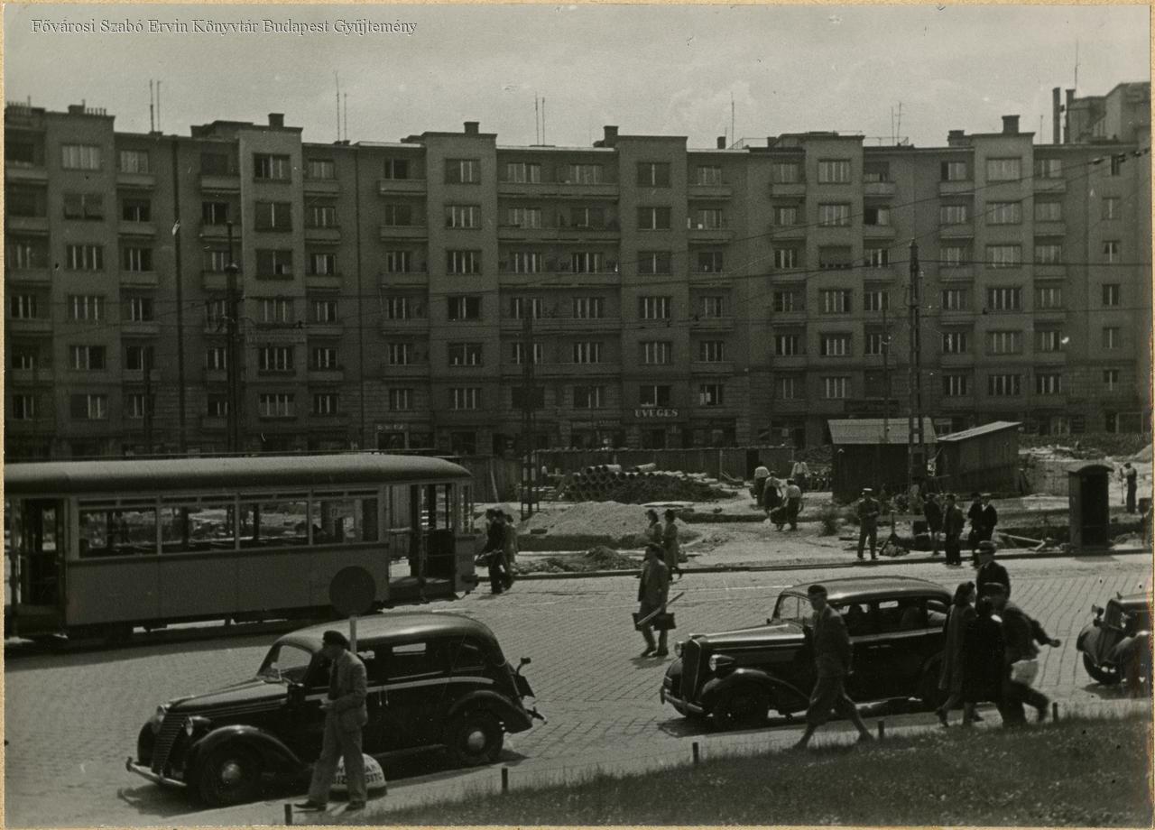 utcakép, építés, városrendezés, lakóépület, személygépkocsi, villamos kocsi, 1937-1940