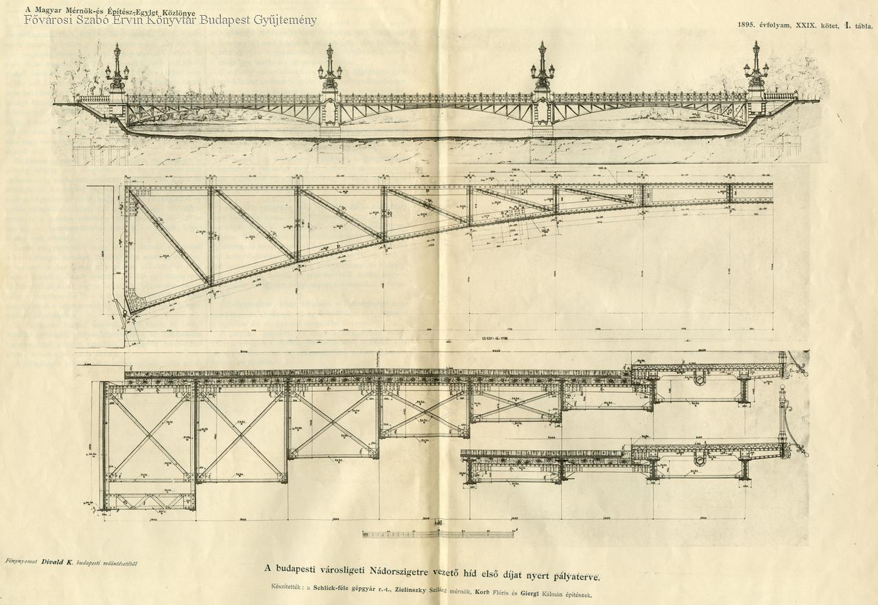 építészeti tervrajz, közúti híd, 1895