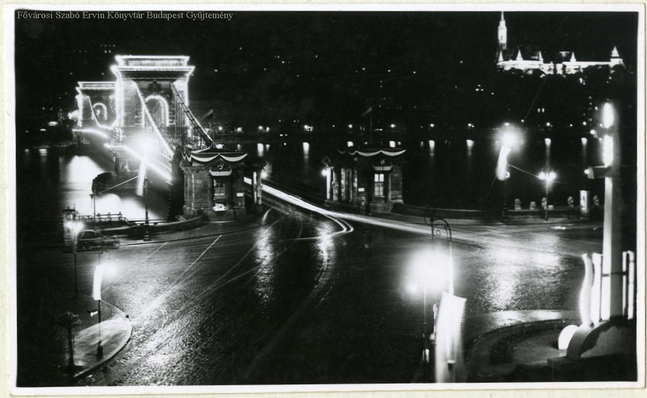 [A Lánchíd és környéke díszkivilágításban az Eucharisztikus Kongresszus alatt