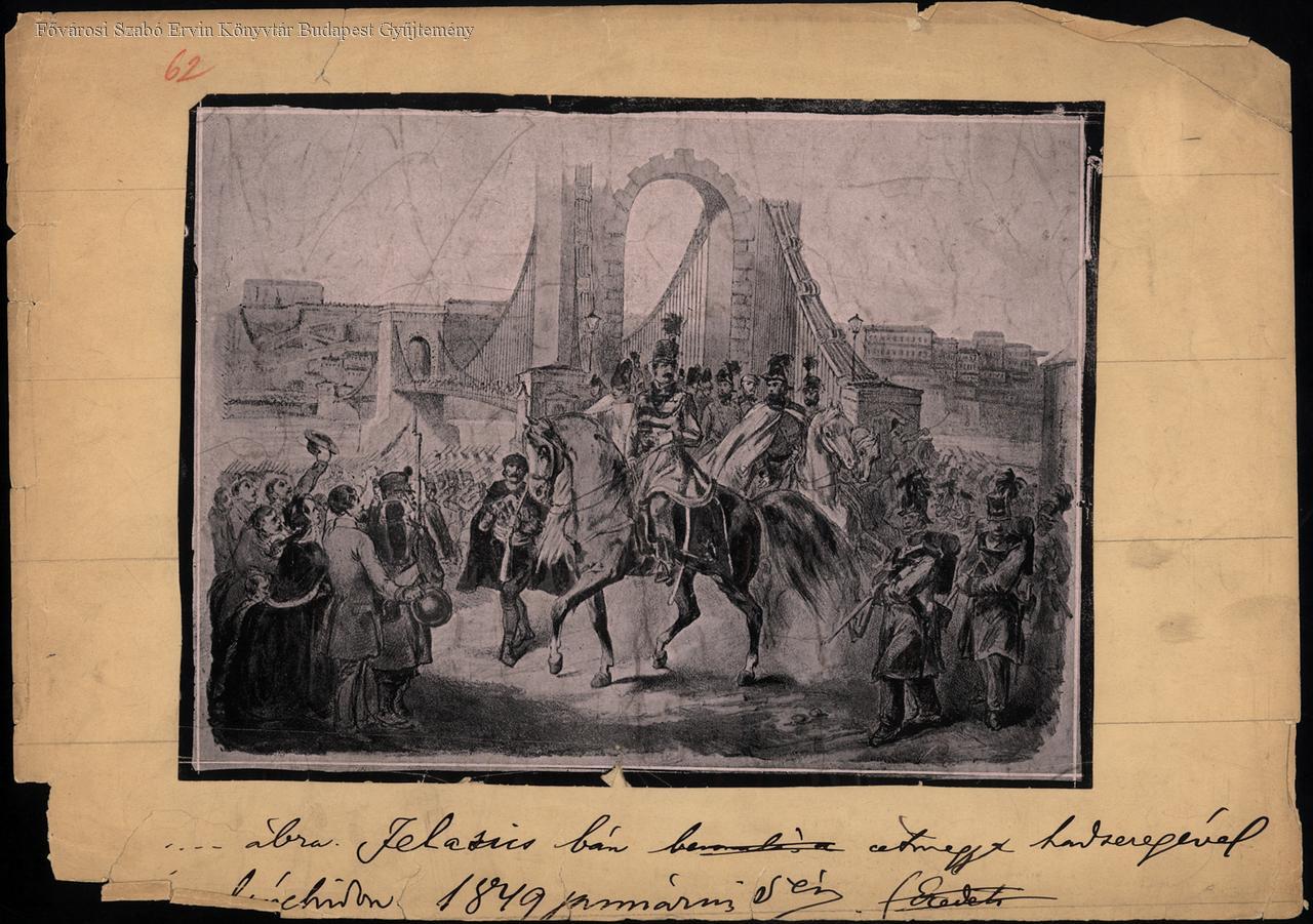 Jellasics átmegy hadseregével a Lánchídon 1849 március 9-én