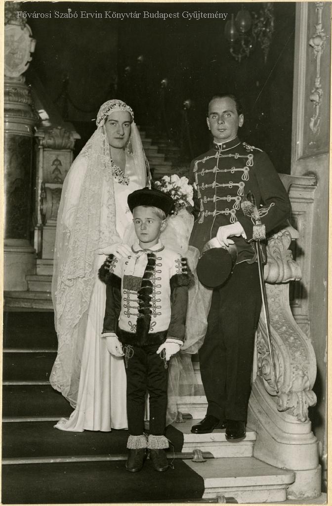 [Felsőbb osztálybéli házaspár esküvői képe egy kisgyermekkel]