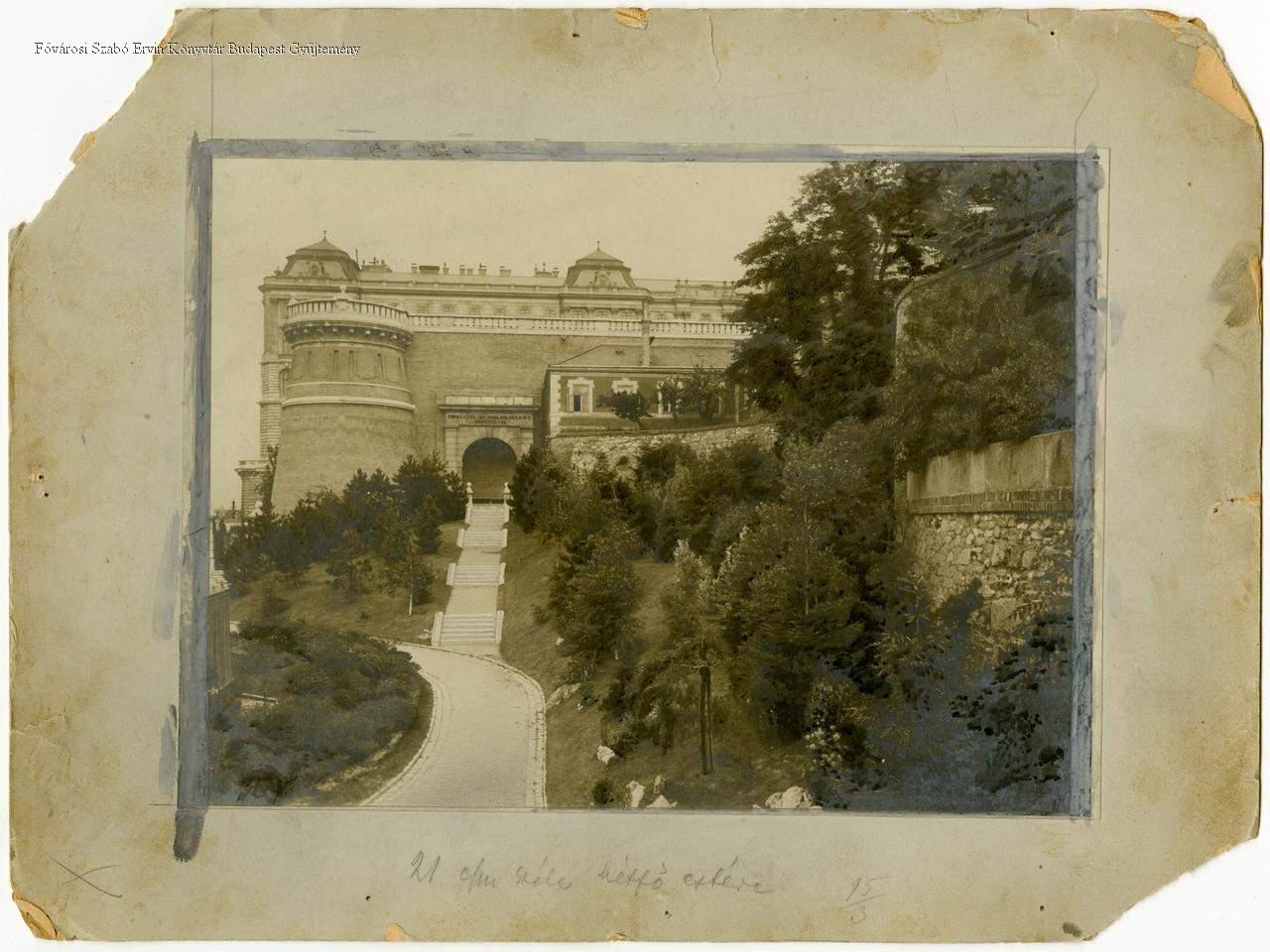 [A Budai Vár délről a Ferdinánd-kapuhoz vezető lépcsősor]