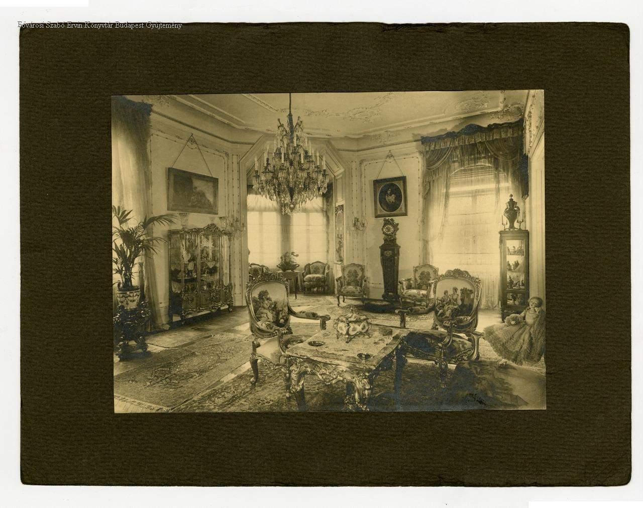 lakás, lakóhelyiség, nappali szoba, bútor, festmény, fénykép, lámpa, játékszer, függöny, szőnyeg, épületkép, belső felvétel, 1930-as évek